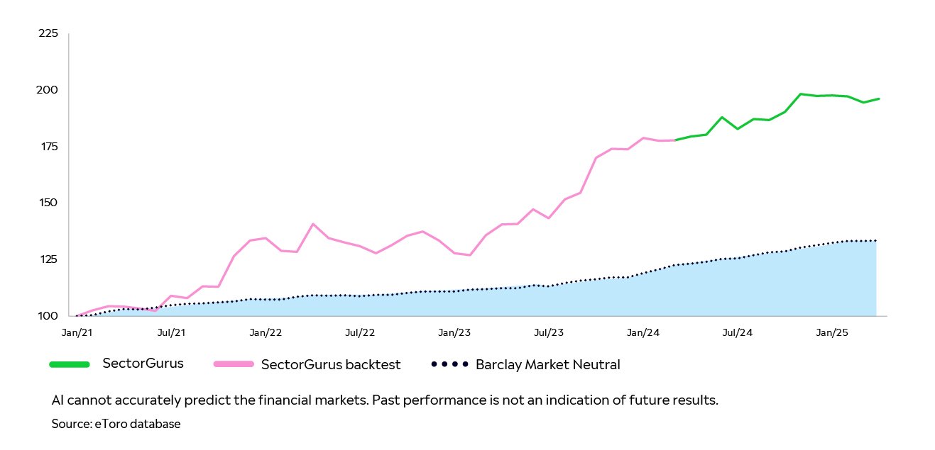 eToro leverages its extensive data pool from millions of traders to generate AI-driven insights. By analysing global trading patterns, sentiment trends, and retail behaviours, eToro crafts systematic investment strategies that may optimise returns while minimising risk.